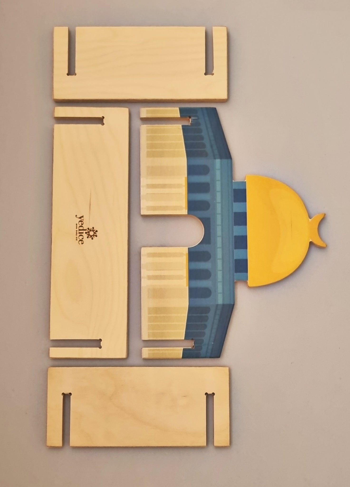 This 4-piece wooden DIY Masjid Al Aqsa block set was created in collaboration with Yedice toys. Children can slide the blocks together themselves to create a rectangular shaped mosque or creatively join the blocks in different designs.