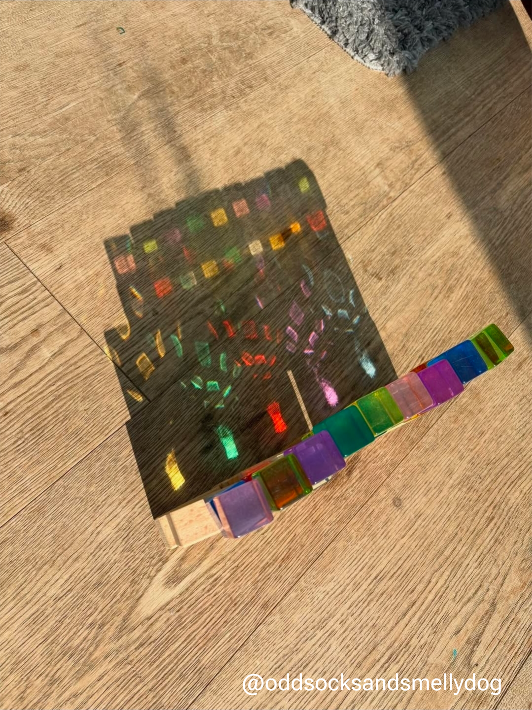 This 30-piece set of wooden and transparent blocks features larger pieces with prismed centres that cast beautiful kaleidoscope patterns when light shines through them. Stored in a wooden tray, the blocks encourage children to explore light, colour, and design while developing building and pattern-making skills.