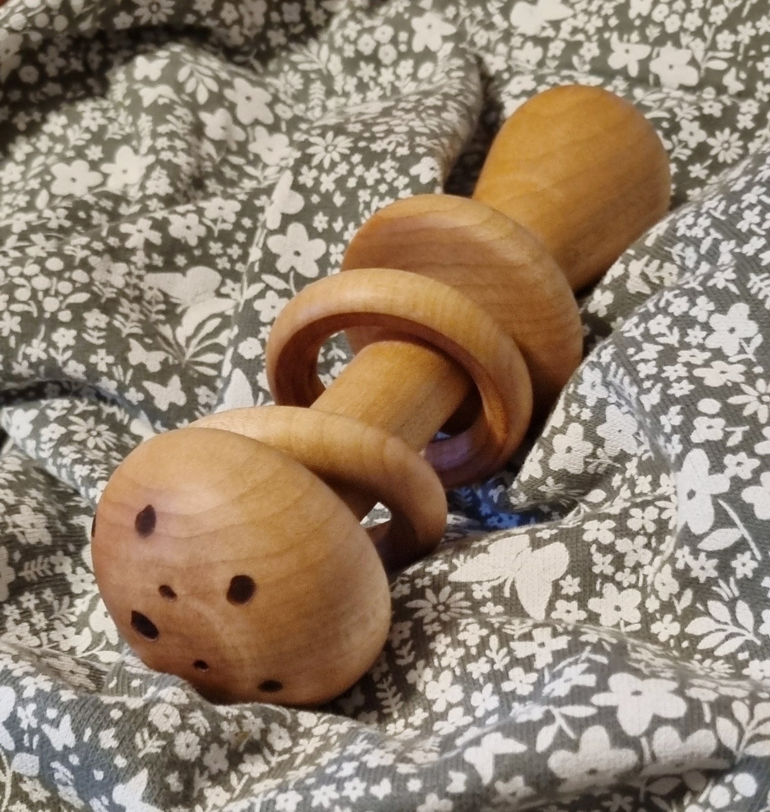 "As parents, the health and happiness of our babies is always our priority. We want to choose the best products to help them grow safely and healthy. This unique toy is made from antibacterial maple, which is both a rattle and a tooth-scratcher, designed with these thoughts in mind".